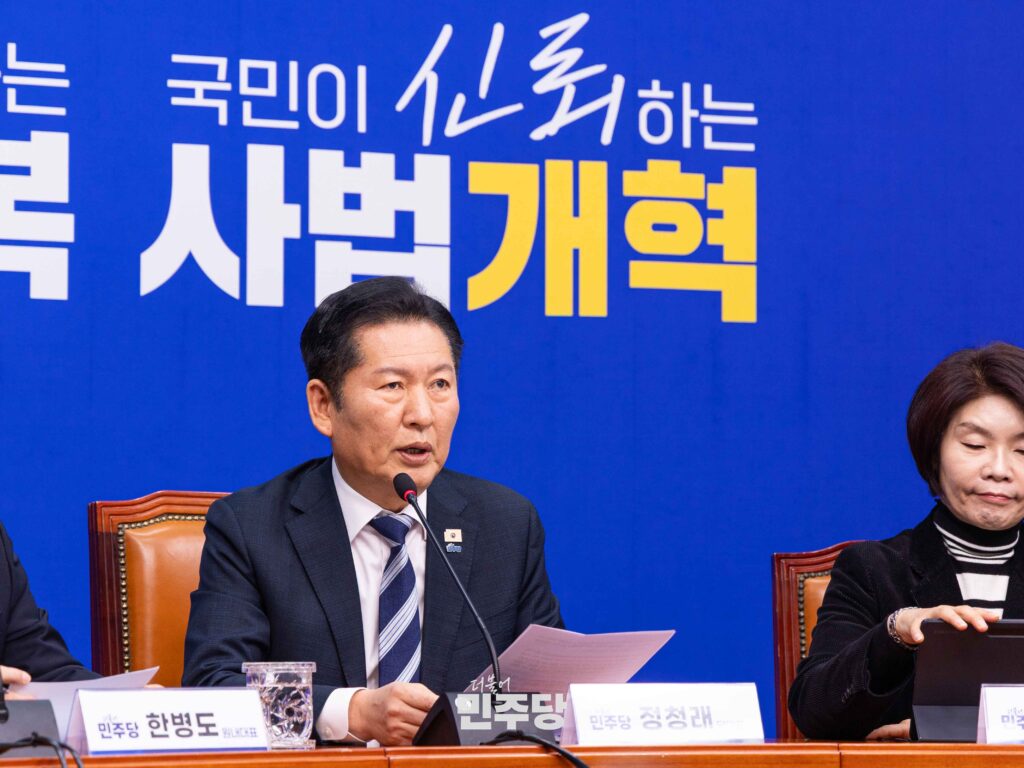 정 대표는 검찰개혁과 관련해 보다 강도 높은 메시지를 내놓았다. 국정조사를 통해 과거 수사·기소 과정의 문제를 규명하겠다고 밝히며, 공소청법과 중수청법 처리를 통해 수사와 기소의 분리를 제도화하겠다고 강조했다. “수사는 경찰에게, 기소는 검사에게 맡겨야 한다”며 검찰 권한 축소 방향을 분명히 했다.