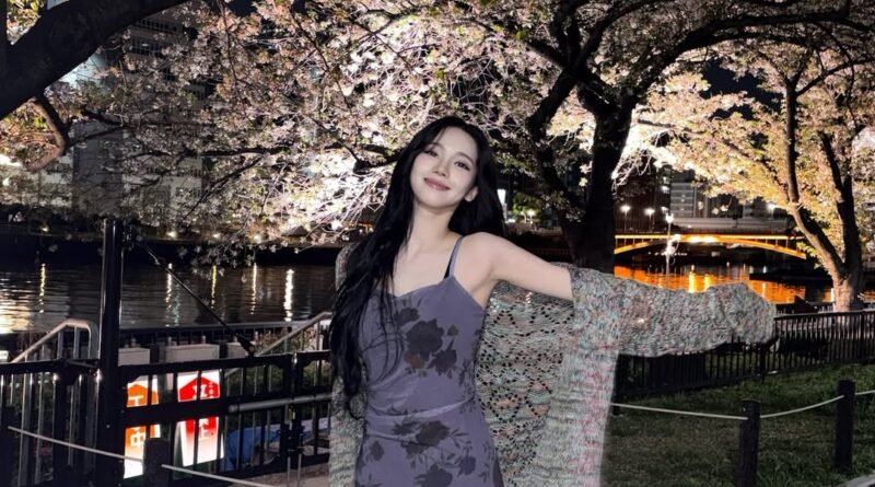 걸그룹 에스파 멤버 카리나가 벚꽃이 만개한 밤 풍경 속에서 감각적인 비주얼을 선보이며 팬들의 시선을 사로잡았다.