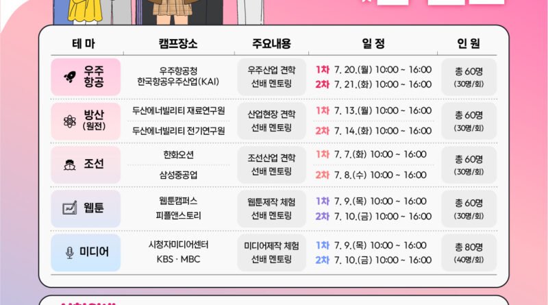 청소년 꿈 캠프는 우주항공, 방산·원전, 조선, 웹툰, 미디어 등 경남 주력산업 관련 기업·기관을 방문해 체험과 강연을 진행하는 1일 캠프로, 7월 7일부터 21일까지 총 10회에 걸쳐 진행될 예정이다.