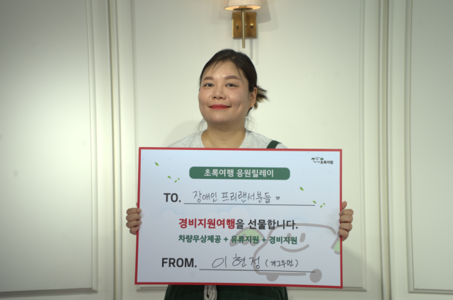 개그우먼 이현정이 기아의 대표 사회공헌 프로그램 ‘초록여행’ 응원릴레이 캠페인에 여섯 번째 주자로 참여하며 장애인의 자유로운 여행을 향한 따뜻한 응원 메시지를 전했다.