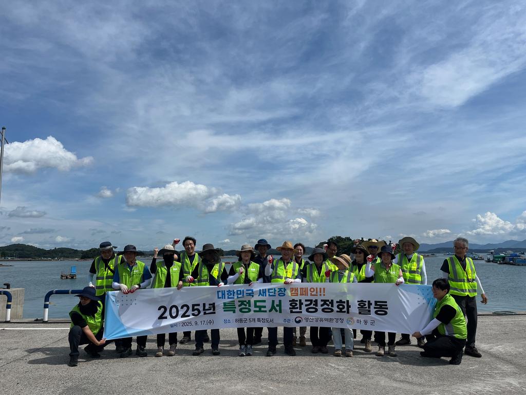 지난 17일 하동군이 영산강유역환경청과 함께 ‘매력하동 새단장 캠페인’의 일환으로 금남면 무인도 5곳(채도·악도·혈도·소첨도·토도)에서 환경순찰 및 해양쓰레기 수거 활동을 벌였다.
